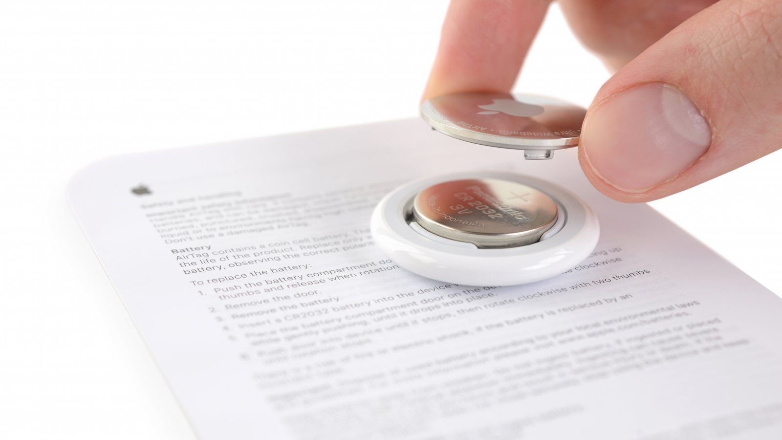 Intorno alla batteria degli Airtag si era sviluppato un piccolo dibattito. La maggior parte delle indiscrezioni puntava alla presenza di una batteria CR2032 anche per via di una parte del codice di iOS 14 che spiega come sostituirla. Chi pronosticava l’uso di una batteria sostituibile ha avuto ragione e si tratta proprio di una CR2032 che si trovano ovunque ad un prezzo molto basso (anche meno di un euro l’una su Amazon). La sostituzione è facile e operabile da parte dell’utente finale senza attrezzi speciali né particolari competenze. Basta ruotare la parte in acciaio dell’Airtag per avere accesso alla batteria.