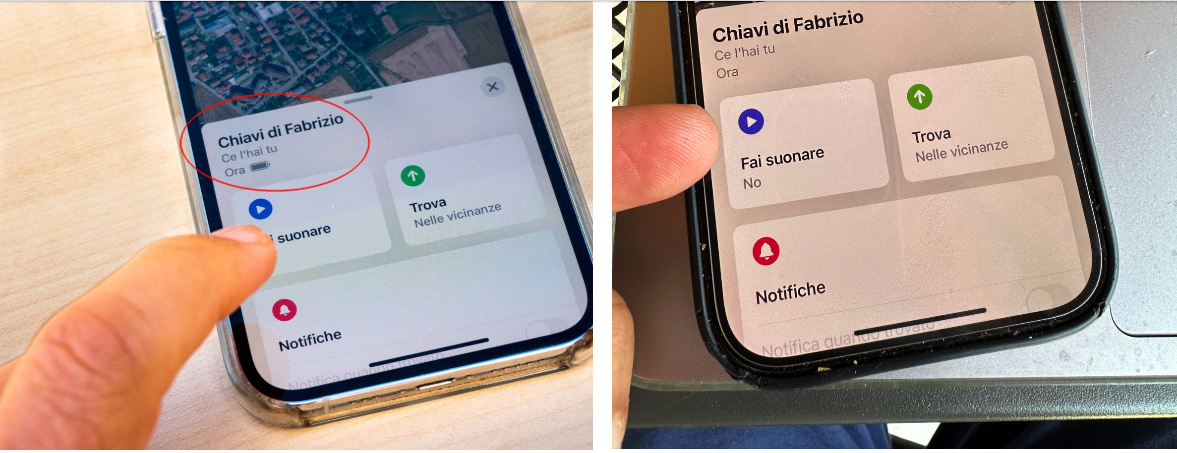 - Per capire dove si trova avremo su iPhone un pulsante per farlo suonare