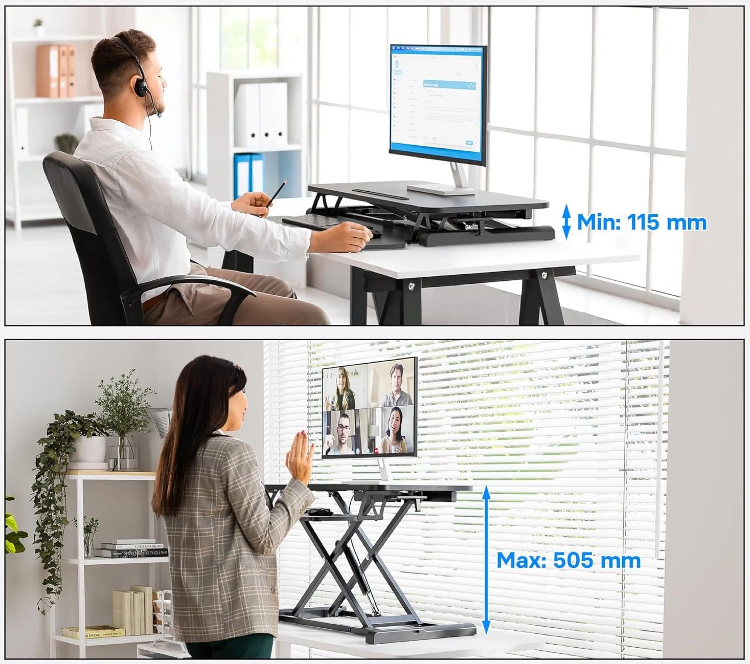 Il range di regolazione dell’altezza come dicevamo è di 11,5 – 50,5 cm e queste misure sono molto importanti per determinare la corretta postura per entrambe le posizioni (seduta ed eretta) in quanto nel lavorare al computer vanno considerate due cose: