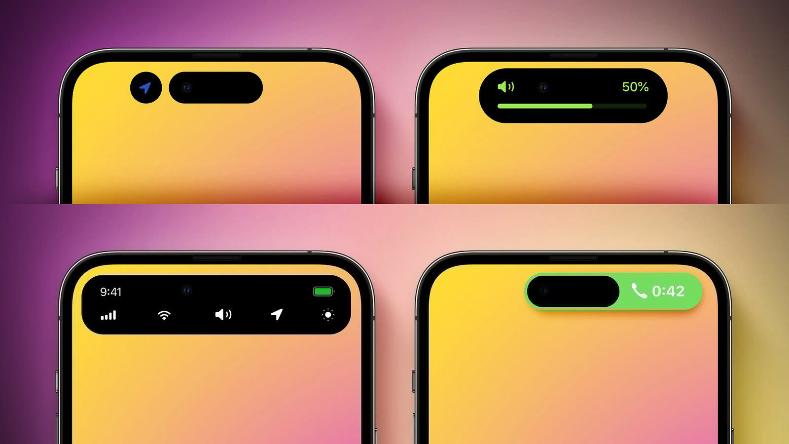 Apple ha poi iniziato a esplorare altre idee più simili all’attuale Dynamic Island. Una versione prevedeva l’allungamento dell’aria in alto sullo schermo ma è stata ritenuta eccessivamente invadente; uno dei test prevedeva nell’aria superiore la comparsa (su sfondo verde) di indicazioni sui minuti della chiamata in corso