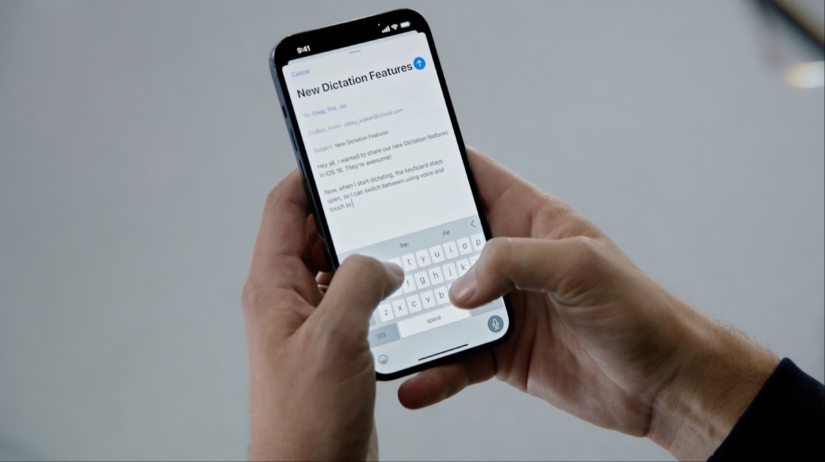 Viene potenziata la funzionalità di dettatura: al momento – ha spiegato Apple durante il keynote della WWDC 2022 – diciotto milioni di volte al mese viene usato il dettato sui dispositivi. Con iOS 16 sarà migliorata anche la qualità. Ed infatti, si potrà dettare con la tastiera attiva, scrivendo mentre si detta o selezionando il testo per sostituirlo con la voce. Infine arriverà la punteggiatura automatica nel dettato e la dettatura di emoji.