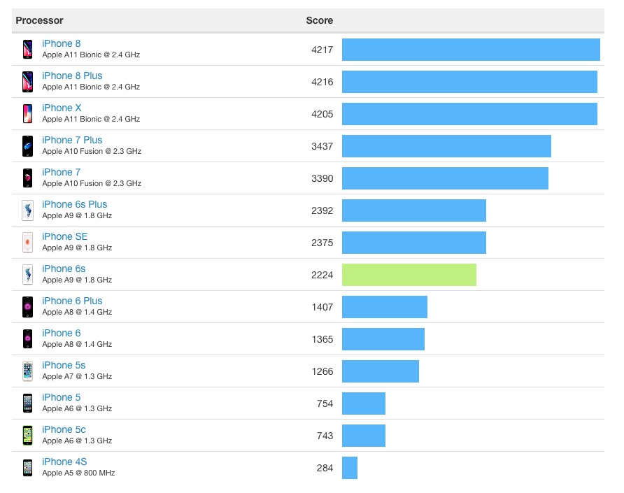 Dove iPhone 8 batte nettamente iPhone 6s è il reparto delle prestazioni. Anche rispetto ad iPhone 7 il nuovo chip A11 Bionic è del 25% più veloce, del 70% più rapido nel multitasking e del 30% più veloce nel reparto grafico.