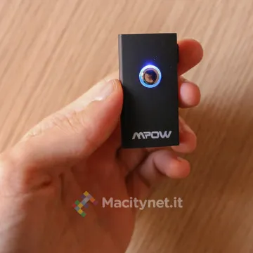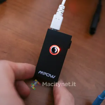 Esteticamente è molto simile, se non identico, ad altri trasmettitori già avuti in passato, conferma del fatto che questi prodotti vengono ormai dalle stesse fabbriche. Cambia quindi soltanto il marchio finale, in questo caso di Mpow, impresso sulla cassa in plastica con finitura gommata.