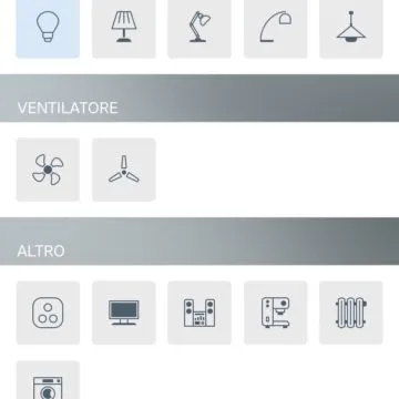 Il passo successivo è quello di “battezzare” l’apparecchio collegato: è una lampada, un ventilatore, un radiatore? La scelta dell’icona ci renderà più facile e gradevole la scelta e la relativa spia dello stato di accensione del dispositivo. Avendo a disposizione un semplice interruttore avremo a schermo un semplice slider che si ripeterà tale e quale anche sull’Apple Watch.