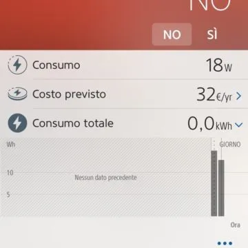 In realtà la presa “passante” ha anche la possibilità di misurare il consumo degli apparecchi collegati ed anche se questa capacità non viene rilevata da “Casa”, c’e’ sempre l’applicazione Eve, che lavora in parallelo, a darci tutte le informazioni e ci fornisce un rapporto dettagliato per ora, giorno, mese delle attivazioni e dei consumi.