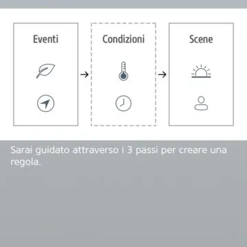 Per le automazioni possiamo utilizzare sia la programmazione delle Scene del software Eve, che ha scene impostate per il geofencing (la posizione del nostro telefono rispetto all’abitazione) come il ritorno o la partenza da casa che attivano in automatico la gestione della luce collegata o magari il rilevamento di temperatura di un rilevatore terzo che fa partire una ventola, oppure una programmazione con timer che decide in quali ore far partire un radiatore elettrico.