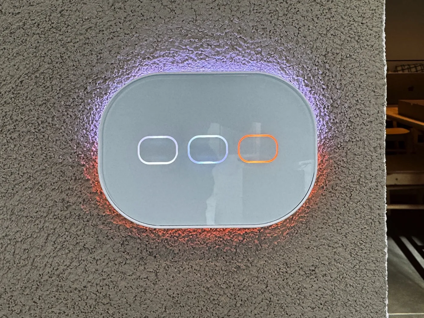 Un WIOO Switch installato in serra solare con colori di prova sia dei tasti che della retroilluminazione con Halo a 4 settori