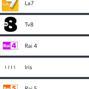 Nel momento in cui scriviamo sono presenti i canali principali del digitale terrestre, nell’ordine: Rai 1, Rai 2, Rai 3, Rete 4, Canale 5, Italia Uno, La7 TV8, Rai 4, Iris, Rai 5, Rai Movie, Rai Premium, Cielo, Paramount TV, TV2000, La5, Mediaset Extra, Italia 2, RTL 102.5, TopCrime, Rai Gulp, Rai YoYo, Rai News 24, Sky TG24, TgCom 24, Dmax, Rai Sport 1 HD, Rai Sport 2, Rai Storia, Rai Scuola, Alice, MarcoPolo, Real Time, Qvc, EuroNews, AutoMoto TV, Focus, Boing, Radio 101, Radio Capital, Radio Italia TV, Virgin Radio TV, M2o TV e Ibiza TV.