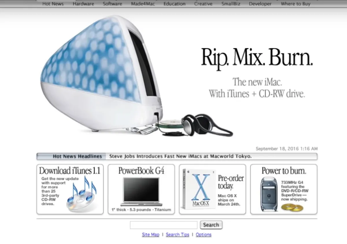 La trasformazione di Apple è ben visibile nel filmato. Nei primi anni a partire dal 1996 il sito web Apple è dominato da computer, accessori e persino software professionali. Man mano che Apple diventa sempre più una società di elettronica di consumo il podio della home page spetta a iPod, alla musica digitale e agli artisti. Periodicamente i computer tornano in primo piano, in occasione dei lanci dei nuovi modelli più importanti, ma lasciano subito lo spazio a iPhone e iPad, servizi online e cloud e così via. Realizzazione e accompagnamento audio non potranno che rievocare una sensazione di nostalgia per ogni appassionati Apple di lungo corso.