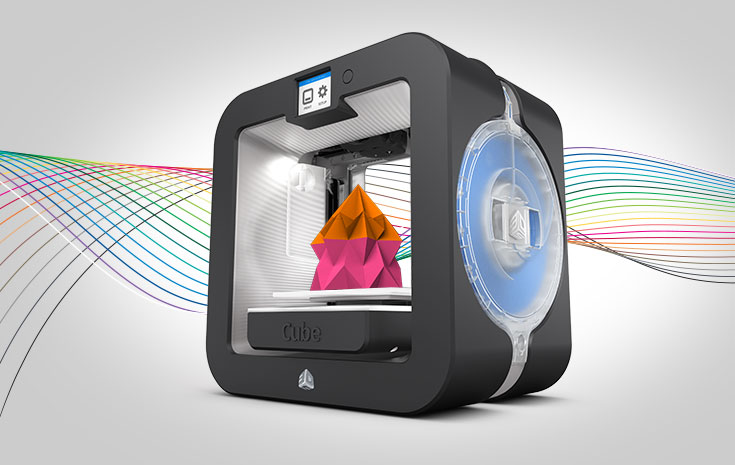 3DCube è una stampante che permette di creare oggetti tramite qualsiasi software 3D. Il dispositivo può stampare con due materiali plastici, ABS e PLA, con una risoluzione di 70 o 200 micron tramite piccoli ugelli, strato su strato, consentendo di ottenere qualsiasi forma.