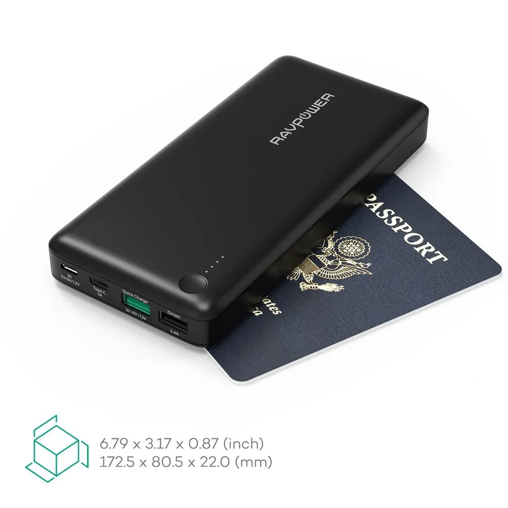 Questo accessorio da 20100 mAh è del tutto diverso da quel che avete visto fino ad oggi. Non solo infatti ha due classiche porte USB, ma anche una porta Type-C;RavPower dice che è la prima batteria al mondo con porta Type-C. Non siamo al corrente se dal momento del lancio ne siano state rilasciate altre, quel che è certo è che questa è la prima batteria di questo tipo che abbiamo avuto tra le mani.
