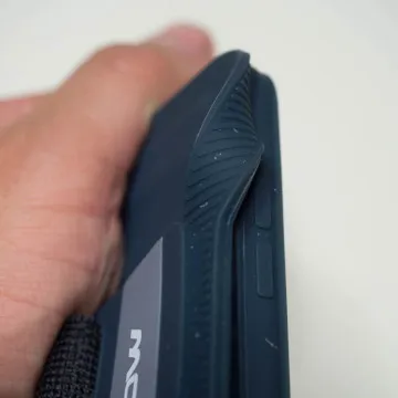 Nessun problema, invece, per quel che riguarda la tutela dagli urti, invece. La gomma che racchiude l’iPhone è molto robusta nella parte posteriore oltre che, ovviamente, completamente impermeabile. È anche lavorata per resistere allo scivolamento e per aderire sia al braccio (o anche all’avambraccio se si usa la fettuccia più corta) nudo che ad un eventuale maglietta.