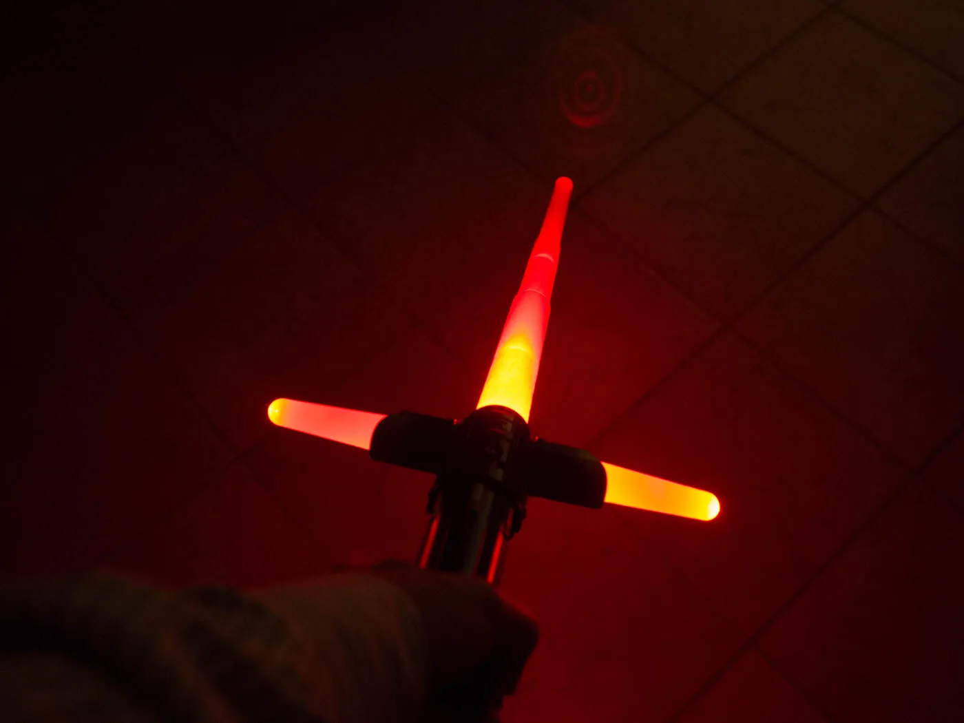 La spada (in vendita anche su Amazon) grazie al cuore Duracell (due stilo), una volta montata, si accende con dei LED e agitandola in aria sferza l’avversario con il classico suono delle spade Laser a seconda del movimento che andremo ad eseguire e potremo anche vedere i lampi di luce illuminare il buio.