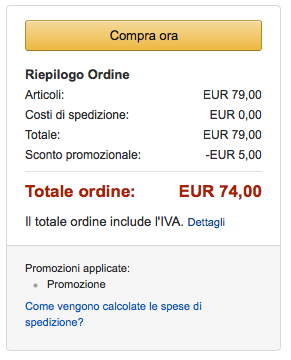 Il codice promozionale sarà già integrato nel vostro account e comparirà all’interno del carrello al momento dell’acquisto anche per prodotti già in offerta, come nell’esempio della Transcend che vi riportiamo nella galleria a fine articolo per chiarezza: l’importante è superare i 50 euro nel carrello con prodotti venduti e spediti da Amazon esclusi prodotti digitali MP3, Applicazioni, eBook, Buoni Regalo, Kindle ed i prodotti venduti da terze parti sulla piattaforma Marketplace e Amazon Warehouse Deals, come spiega l’azienda stessa.
