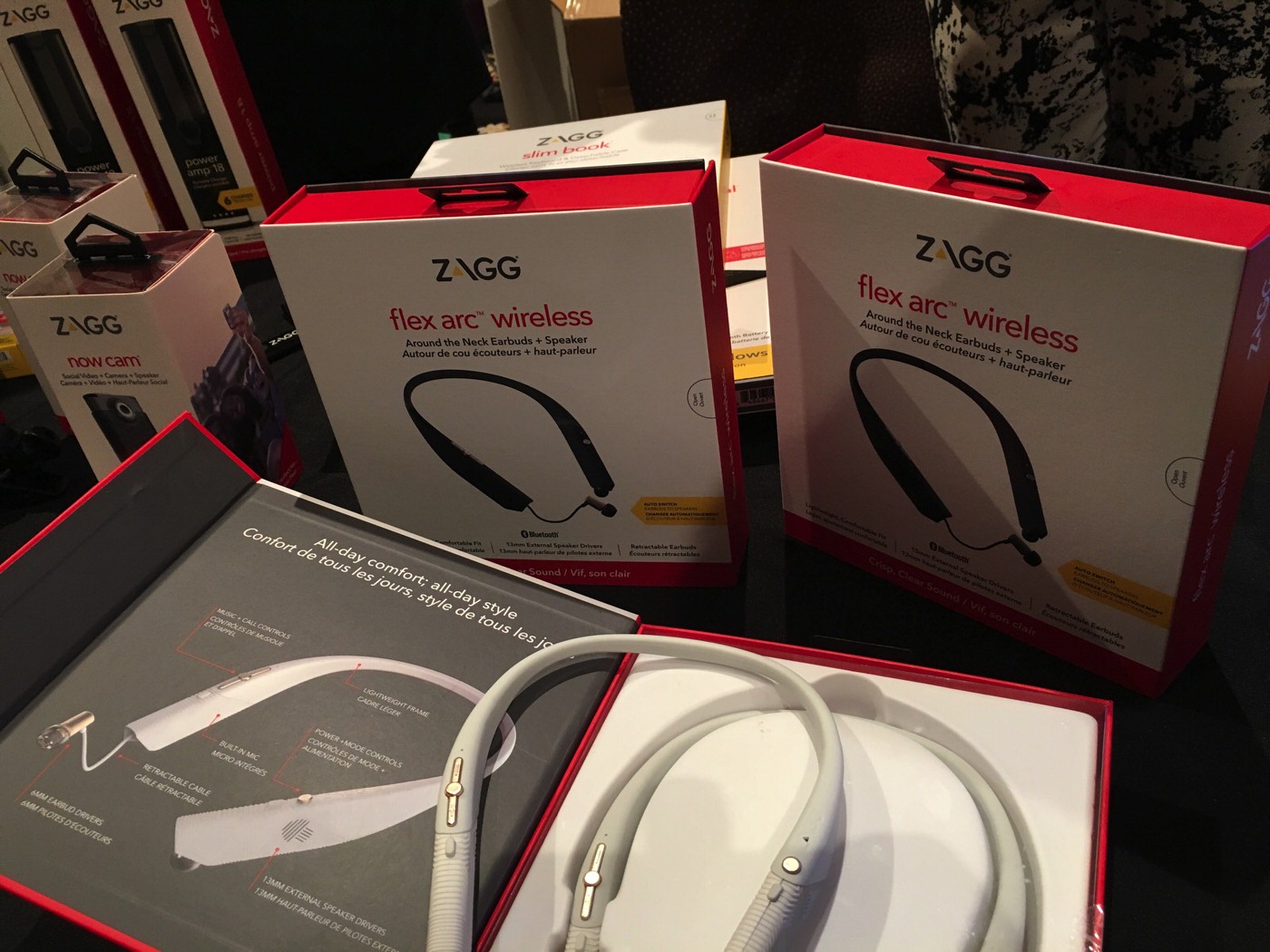 ZAGG infine ha anche presentato delle originale cuffie a collare che sono anche speaker. È possibile usarle come altre normali cuffie, mettendo gli auricolari. Il design ergonomico,permette di richiudere gli auricolari e di usare il microfono e l’altoparlante integrato per effettuare chiamate in vivavoce. L’autonomia permette di ascoltare musica per otto ore prima della ricarica completa.