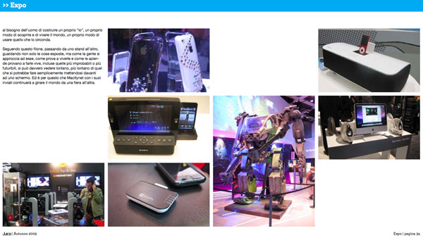 Juice è un file PDF di 10MB scaricabile gratuitamente a partire da questa pagina di Macitynet. Tra i numerosi contenuti di Juice ricordiamo una panoramica esaustiva di tutto il nuovo hardware della Mela, una guida mercato per scegliere il Mac più indicato per le nostre esigenze, una panoramica completa di tutti i programmi Office per lavorare e aprire i file che ci inviano colleghi e amici da altri sistemi, le migliori applicazioni per iPhone e touch scelte dalla redazione e molto, molto altro ancora.