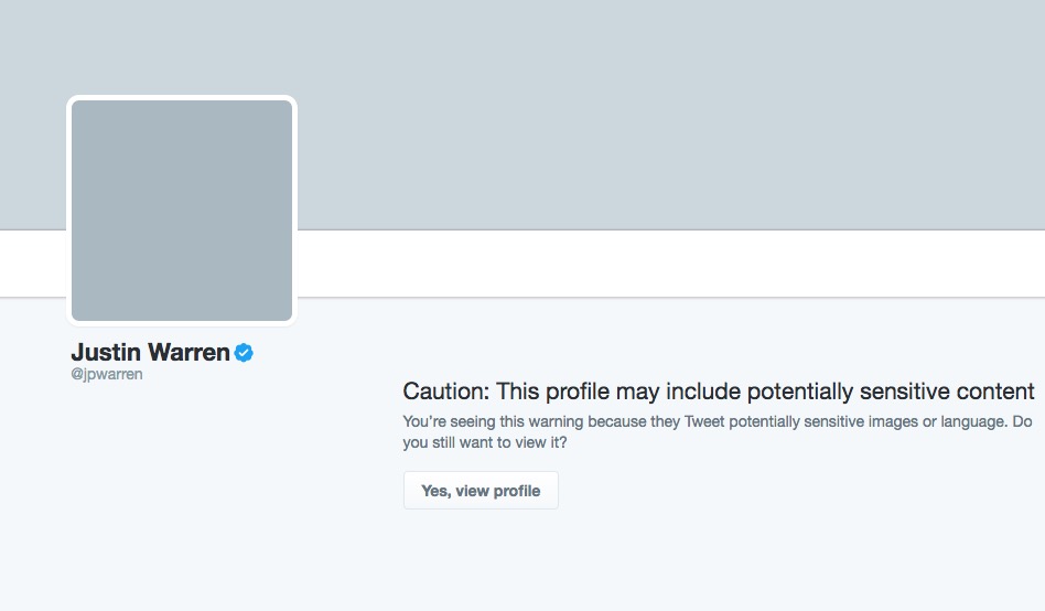 Per evitare di imbattersi inaspettatamente in contenuti non sicuri, Twitter ora fornisce il seguente avviso sui profili censurati: “Attenzione: Questo profilo può includere materiale non adeguato a tutti. Stai vedendo questo avviso perché vengono twittatti immagini o usato un linguaggio che potrebbero urtare la sensibilità”.