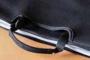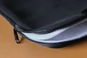 La custodia è molto morbida, caratterizzata da una stoffa felpata bianca all’interno, velluto nero lungo base e bordi e un materiale plastico reversibile nero all’esterno, utile a proteggere il computer da piccoli urti, graffi e polvere. Si chiude attraverso una doppia cerniera e può essere trasportata con estrema facilità grazie alle maniglie che scompaiono all’interno di due tasche chiuse con del nastro in tessuto a strappo: in questo modo potremo eventualmente decidere di portarla sotto braccio eliminando l’ingombro delle maniglie, oppure tirarle fuori all’occorrenza. Riguardo queste, sono sottili in corda, protette da stoffa vellutata cucina al centro, che ne facilita la tenuta senza scivolare o “segare” le mani: seppur alla vista possono sembrare fragili, sono saldamente cucite su un’ulteriore banda di stoffa nascosta all’interno delle tasche che assicura un’ottima tenuta del computer durante il trasporto.