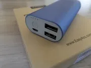 Come tutte le batterie portatili EasyAcc, anche questa power bank da 6400 mAh risulta molto elegante e minimale nel design. Rivestita di alluminio, con una strana colorazione tendente al viola, la batteria non reca sulla superficie alcun elemento grafico, salvo il piccolo logo dell’azienda produttrice. Sulla parte alta sono invece posizionate le due prese USB, l’ingresso MicroUSB per la ricarica e il pulsante che permette di accendere i 4 LED di ricarica, che indicano lo stato della batteria. Questi LED a luce bianca rimangono spenti durante la ricarica dei vari dispositivi, così che la batteria potrà essere utilizzata anche di notte al buio senza avere alcun fastidio di fonti luminose. Come sempre, i LED bianchi di questo prodotto sono quattro e servono ad indicare l’autonomia residua: quattro LED accesi indicano uno stato che va dal 75 al 100%, tre LED indicano 50-75% di autonomia residua, due LED soltanto dal 25 al 50% e, infine, un solo LED indica un’autonomia da 5 al 25%. Un solo LED lampeggiante, invece, indicherà un’autonomia che va dallo 0 al 5%.