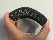 Come accennato si tratta di una custodia semiprotettiva, questo significa che è discretamente rinforzata ai bordi, realizzati in una gomma piuttosto robusta e capace di assorbire gli urti, e ha un bordo sporgente verso l’alto, capace di tutelare lo schermo da sfregamenti su una superficie come una scrivania. Il produttore mostra una buona cura anche nell’ergonomia: la parte gommata si stende anche sul retro, creando una sorta di impugnatura antiscivolo. Questi due bordi, in collaborazione con il tassello in gomma, sollevano anche il dorso dal piano del tavolo di qualche millimetro, in maniera tale da ridurre il rischio di graffi alla parte in plexiglass che distingue il retro.