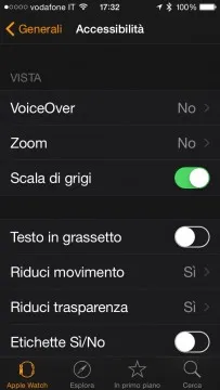 Per tentare di incrementare la durata batteria Apple Watch, è possibile spegnere queste due funzioni. Per farlo è sufficiente aprire l’applicazione Apple Watch su iPhone e recarsi nel menù accessibilità.