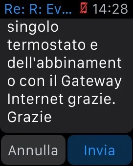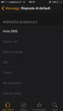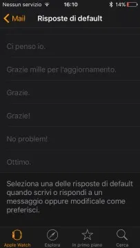 Potete personalizzare i messaggi standard di risposta eMail e di Messaggi in modo da operare velocemente dall’orologio o rimandare ad una formulazione più articolata in seguito.