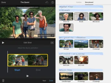 È presente una opzione per nascondere il browser multimediale durante la modifica dei filmati, l’opzione per disabilitare l’animazione Ken Burns sulle foto. La vista “Dettagli progetto” ridisegnata consente di guardare i filmati e i trailer prima di aprirli; la vista Video ridisegnata consente di visualizzare più elementi della libreria mentre si sfogliano video e foto su iPad.