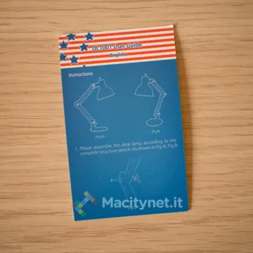 La lampada si compone principalmente di quattro parti che sarà necessario assemblare in quanto arriva a casa smontata per risparmiare spazio nella confezione di vendita, molto più piccola e maneggevole.