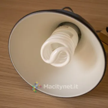 Noi ne abbiamo affiancata una a risparmio energetico da 23W, lunga complessivamente (attacco compreso) 12 centimetri: diciamo questo perché una più lunga potrebbe sporgere fuori dal paraluce, mentre entro questo limite la lampada è ancora completamente lineare. Per quanto riguarda i Watt segnaliamo che è possibile optare anche per modelli più potenti, purché non superino i 40W, limite massimo supportato dal portalampada.