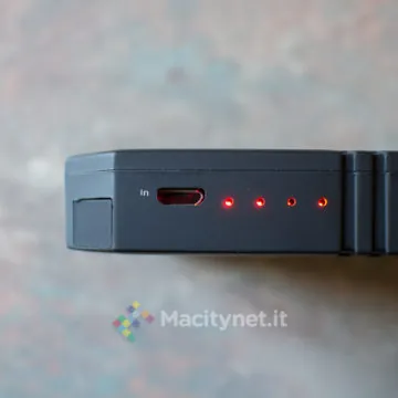 Come prima prova abbiamo fatto scaricare completamente la batteria per poi ricaricarla tramite cavo microUSB. Sono state necessarie circa quattro ore per ripristinare completamente l’energia. A quel punto l’abbiamo usata per ricaricare la batteria del nostro iPhone 6 Plus al 6% di energia: tutta la carica è stata sufficiente per ripristinare completamente la batteria del telefono nel quale, lo precisiamo, era attiva la modalità aereo, quindi con GPS, ricezione telefonica e tutte le altre funzioni disabilitate.