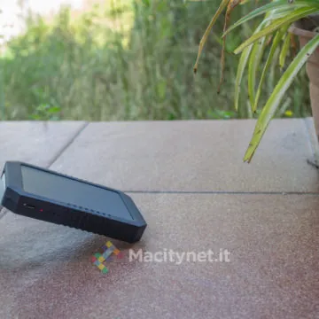 Nel secondo test abbiamo messo alla prova le capacità di carica del pannello solare incorporato. Abbiamo posizionato quindi la batteria sul nostro ampio balcone, dalle 12:00 alle 14:00 del 20 luglio in una giornata soleggiata, inclinando il pannello in direzione del sole aiutandoci con il gancio che, come anticipato, funge anche da cavalletto. In queste due ore la batteria ha assorbito energia sufficiente per portare la batteria del nostro iPhone 6 Plus dal 46% al 61%. Nel caso specifico, il telefono era acceso e funzionante, con lo schermo bloccato: lo abbiamo sbloccato soltanto qualche minuto per rispondere ad un paio di messaggi ed email ricevuti durante la ricarica.