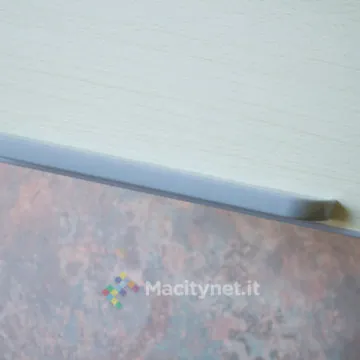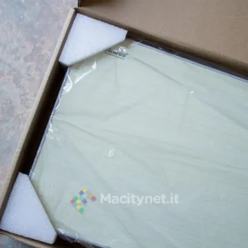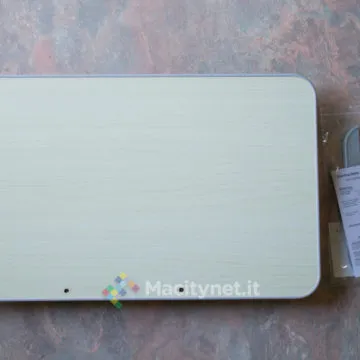 Ottima la lavorazione della superficie, che resiste all’usura e soprattutto ai liquidi: abbiamo provato a rovesciarci volutamente sopra un bicchiere d’acqua e quest’ultima è scivolata via senza infiltrarsi minimamente nel legno. Una cornice gommata riveste poi tutti i bordi offrendo un leggero rialzo di pochi millimetri da entrambe le parti, perfetta per assorbire eventuali urti nel caso ci dovesse scivolare di mano.