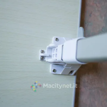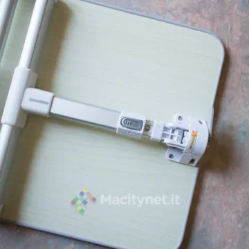 Al di sotto troviamo, inizialmente chiuse, le due gambe estraibili. Il primo ed unico dubbio lo abbiamo avuto qui, sul sistema di apertura, al primo contatto. Nel manuale infatti non c’è alcun riferimento sull’eventuale presenza di un sistema di blocco, ma provando a tirarne una verso l’alto, per via della rigidità del gancio, il dubbio ci è venuto.