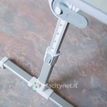 I materiali sono ottimi, è leggero e ampiamente configurabile in altezza ed inclinazione del piano. Le gambe sono anche molto ampie ed offrono un’elevata stabilità, soprattutto a letto: l’unico leggero dondolio lo abbiamo rilevato nell’uso alla massima estensione delle gambe appoggiandolo sulla scrivania.