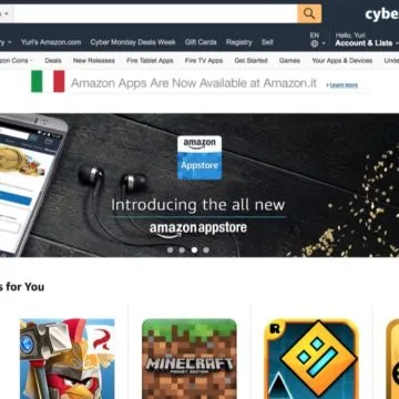 Seppur, come dicevamo, alla versione attuale manchi la ricerca dalla Fire TV, è comunque possibile cercare le applicazioni manualmente sfruttando il browser del computer. E’ sufficiente aprire questa pagina e digitare il nome dell’app desiderata. Ma non basta perché c’è un altro problema: non c’è il pulsante “download”, perciò finché Amazon non aggiornerà la pagina dello store italiano non sarà possibile scaricare le app seguendo questa strada. La soluzione l’abbiamo scovata nella versione americana dello store.