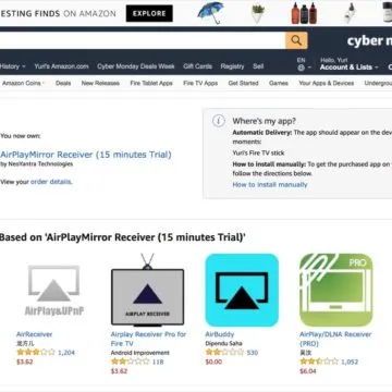 Con il metodo per cercare e scaricare le app tramite browser del computer descritto in precedenza, digitate “airplay” e scaricate l’app AirPlay Mirror Receiver. C’è sia la versione di prova (qui il link diretto allo store americano), utilizzabile gratuitamente per 15 minuti, sia quella a pagamento (qui il link) che vi garantirà un utilizzo illimitato dell’app.