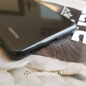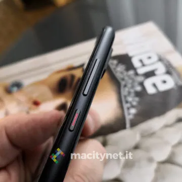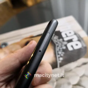 Al di sotto è posizionato la tradizionale spilla per l’estrazione del carrello SIM, mentre ancora più sotto sono posizionati il cavo per la ricarica USB-Micro USB-C, con il caricatore da parete, che assicura una ricarica SuperFast, certificata da TÜV Rheinland.