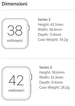 Anche in questo caso lo smartwatch non è dotato di modulo GPS, ma solo di Wi-Fi e Bluetooth 4.2. Gode di uno schermo Display Retina OLED con Force Touch e luminosità massima di 450 nit, e il quadrante è protetto da un resistentissimo Vetro Ion-X. L’autonomia è affidata ad una batteria ricaricabile integrata agli ioni di litio che stando ai test Apple assicura fino a 18 ore di utilizzo.