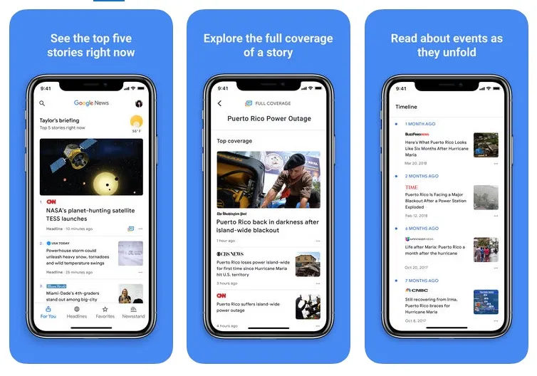 Google News offre informazioni su ciò che accade nel mondo, con particolare attenzione alle notizie che più interessano. L’app permette di visualizzare in un sol colpo la propria rassegna stampa, che offre costantemente informazioni su ciò che per è più importante per l’utente e pertinente, a seconda dei gusti e delle preferenze. La rassegna stampa viene costantemente aggiornata e propone le cinque principali notizie da conoscere, includendo contenuti locali, nazionali e del mondo intero.