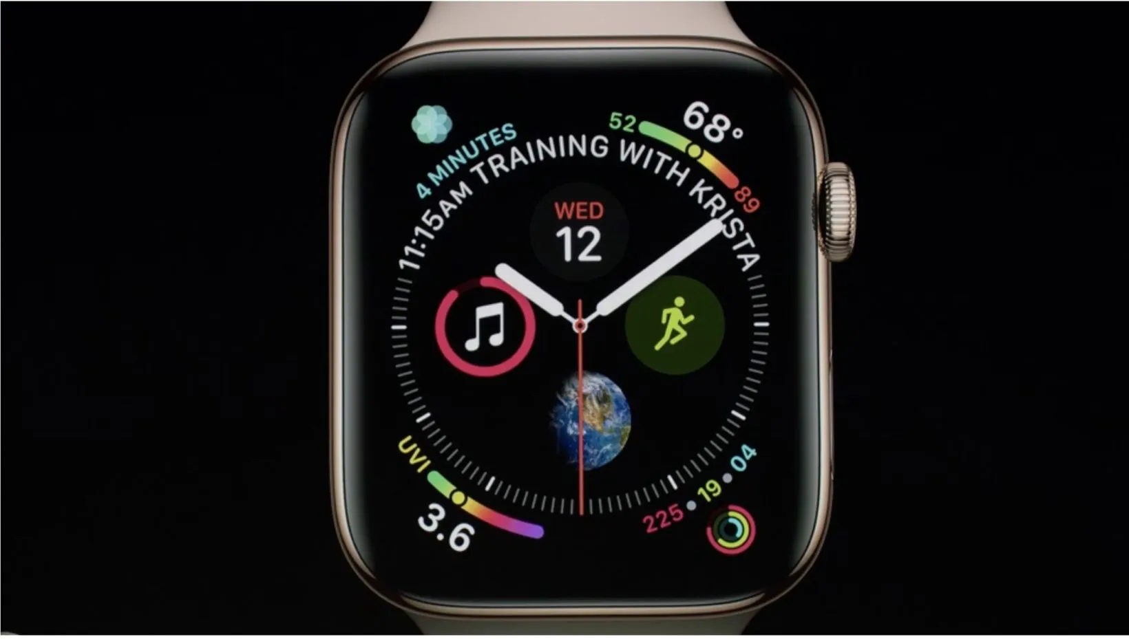 In effetti i primi render “reali” apparsi in rete, come quello sopra, oltre ad un display edge-to-edge, evidenziavano un nuovo quadrante in grado di mostrare più informazioni rispetto agli attuali. La watch face tipo analogica mostra un totale di otto “complicazioni” (un termine dell’orologeria classica indica tutto ciò che in un segnatempo non indica l’ora). Apple ha previsto nuovi quadranti di serie che saranno disponibili grazie a watchOS 5 (riferimenti specifici erano stati già individuati nella beta di watchOS 4.3.1).