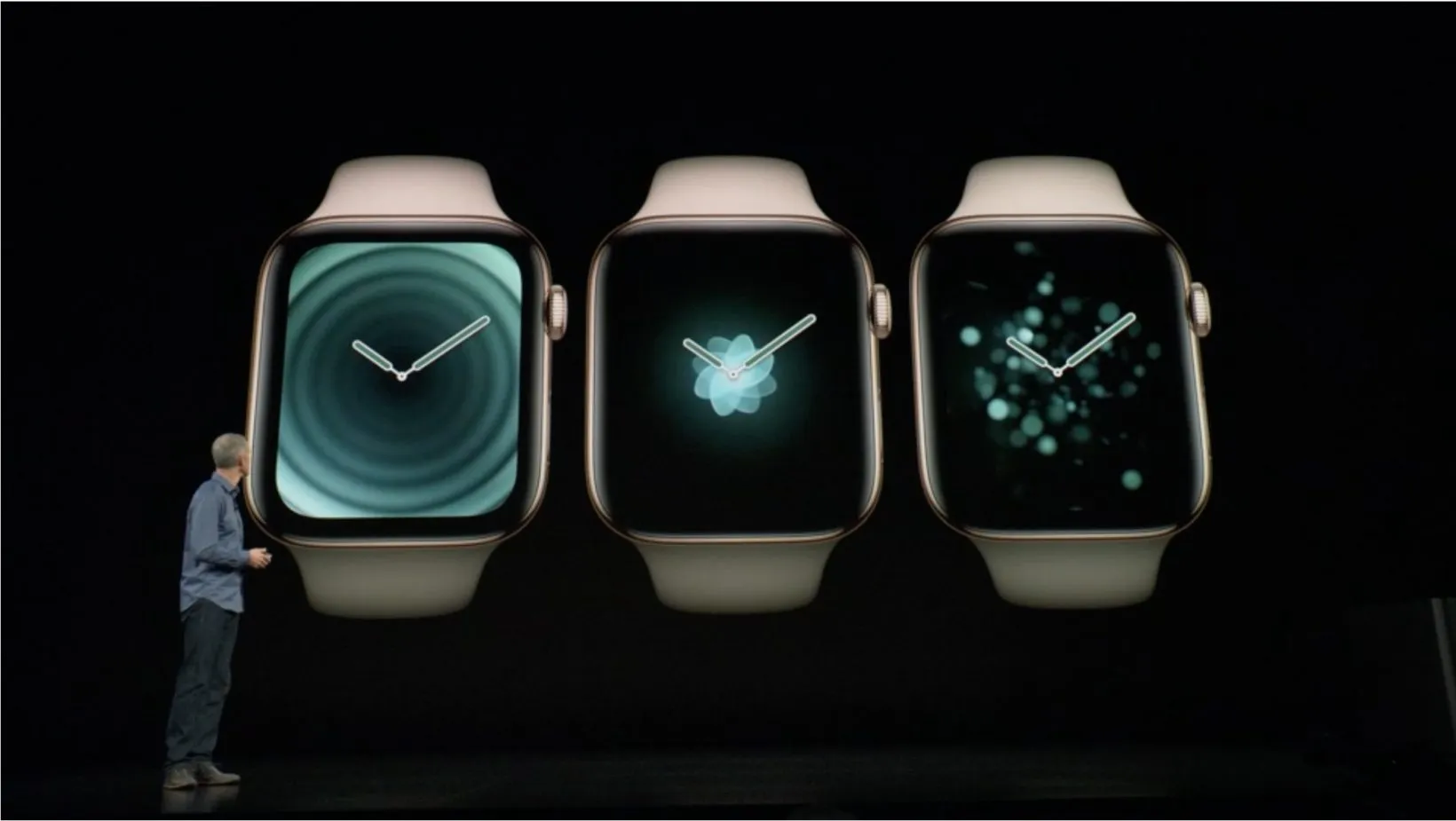 Anzitutto lo schermo. Apple Watch 4 è stato immaginato, sin dai primissimi rapporti, con un un display più grande, che però non aumenta particolarmente la dimensione complessiva dello smartwatch. Questo grazie a cornici un po’ più sottili. E così, Apple Watch 4 ha una dimensione complessiva identica agli attuali modelli, ma con un display più grande.