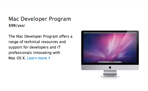 Diventare sviluppatore Apple costa ora solo 99$. L’interessante novità che equipara il costo della licenza per creare programmi Mac a quella per programmi per iPhone, iPod touch e iPad è di questa notte, apparsa sul sito degli sviluppatori Apple dopo uno stop dello stesso sito durata alcune ore. 99 dollari, circa 73 euro, è una cifra eccezionalmente bassa rispetto al costo precedente che partiva da 499 e arrivava a 3499 dollari.
