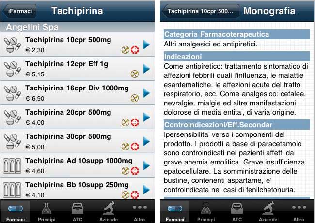 iFarmaci, sviluppato da Federico Frezza e Andrea Isidori, già noti per avere rilasciato applicazioni come iLex e iLex la Costituzione, è basato sull’esperienza di infofarm.net, una realtà specializzata in gestionali da farmacia che garantisce qualità e tempestivo aggiornamento dei dati. La solidità del database si aggiunge alla qualità grafica e alla funzionalità : si può navigare per principio attivo, ATC e per azienda, con ricerca veloce ed efficiente. Nella scheda del farmaco ci sono tutte le informazioni, tra le quali: gruppo farmaceutico, note, Degrassi, SSN, scadenza, modalità di conservazione e la monografia integrale
