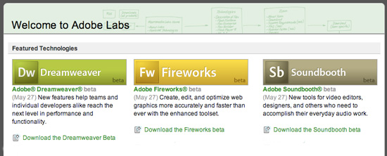 Adobe questa notte ha messo a disposizione le versioni beta di alcuni programmi della sua prossima Creative Suite. Si tratta di Dreamweawer, Fireworks e Soundboot.