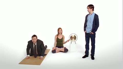 Nel primo che si chiama Yoga, Pc sta facendo, appunto, una seduta Yoga questo per espellere le “energie negative” che arrivano dall’uso di Vista. Peccato che l’insegnante, mentre ricorda le cose che devono essere lasciate dietro le spalle, si spazientisca, rovesciando persino il gong, ripensando al fatto che, la scuola Yoga non passando a Mac e usando Vista si è trovata “con il sistema di pagamento a quel paese”. “Forse è meglio che mi metta a fare Pilates”, dice Pc mentre l’insegnante se ne va piuttosto innervosita.