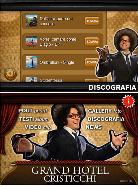 Sony ha anche deciso di regalare a tutti coloro che scaricano “Grand Hotel Cristicchi” un estratto del video di “Meno Male”, la canzone che in questi giorni è in gara a Sanremo. Il video verrà aggiunto all’applicazione in una fase successiva, al momento della distribuzione del primo aggiornamento.