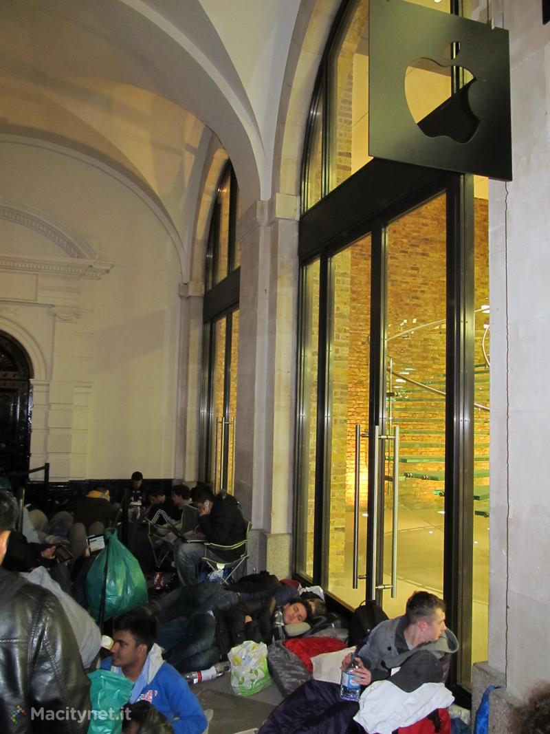 Di fronte ai due negozi principali della città, quello di Regent Street di cui abbiamo parlato in serata, e quello di Covent Garden, fin da questa mattina si è formata una fila che sta crescendo per ora lentamente ma con costanza. In particolare a Covent Garden dove ci siamo recati alcuni minuti fa la coda è già molto consistente e stimabile in circa 200 persone in attesa dell’apertura delle porte del negozio prevista per domani mattina alle 8. Davanti a tutti si trova Robert Shoesmith, un giovane sviluppatore di Coventry che è qui in attesa da 10 giorni. La sua professione (sviluppatore) gli ha permesso di stazionare per tutto questo tempo di fronte alle vetrine del negozio con la speranza, soddisfatta a questo punto, di essere il primo.