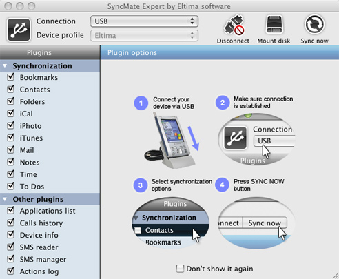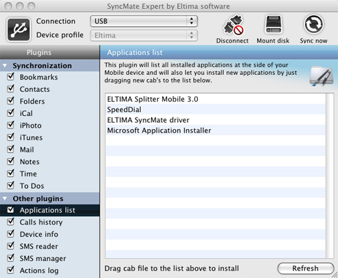 Lo sviluppatore statunitense Eltima mette a disposizione degli utenti Mac che utilizzano smartphone e palmari Pocket PC – Windows Mobile il programma SyncMate che rende possibile la sincronizzazione di contatti, impegni e molto altro ancora tra lo smartphone e il palmare Windows Mobile e il Mac. Il programma è disponibile in due diverse versioni: SyncMate Free Edition con funzionalità base e completamente gratuito e la versione a pagamento SyncMate Expert Edition che offre una serie completa di servizi.