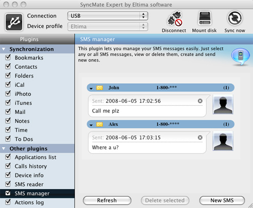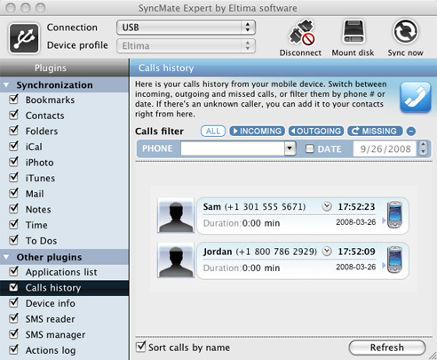 Ancora, SyncMate Expert Edition permette di consultare lo storico delle chiamate telefoniche dello smartphone Windows Mobile, ricercare tra chiamate in entrata, in uscita e perse, stesse funzioni anche per gli SMS di cui permette la composizione dal Mac e l’invio automatico tramite lo smartphone. Lo sviluppatore Eltima offre una tabella di confronto che evidenzia le funzioni possibili con le due versioni del programma.