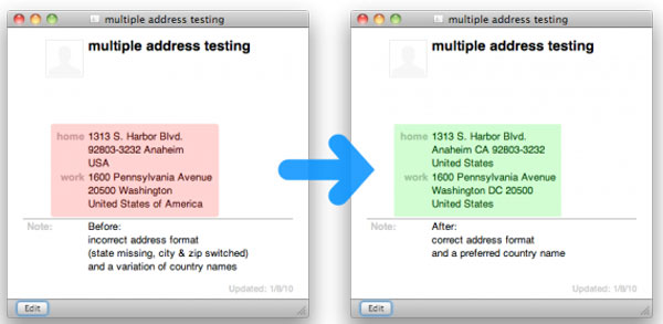 Rubrica Indirizzi se la cava piuttosto bene come database per i nostri contatti ma gli utenti che devono inserire diversi contatti che risiedono al di fuori dell’Italia riscontrano un paio di fastidiose limitazioni. Per i contatti che risiedono all’estero infatti è possibile che il nome della nazione venga memorizzato in modo diverso: nel caso degli Stati Uniti l’indicazione potrebbe essere di volta in volta USA, US e anche United States of America.